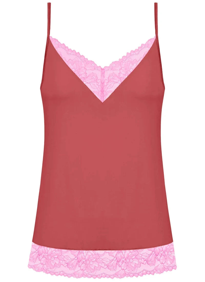 Flytende og myk singlet som omfavner deg med komfort i hver tråd. Det utsøkte materiale kombinerer pustende naturlig viskose med elegant floral blonde. Stoffet faller pent, har en avslappet passform, og stroppene er regulerbare. Matches gjerne med truse fra samme serie. Tips: Helt nydelig å sove i